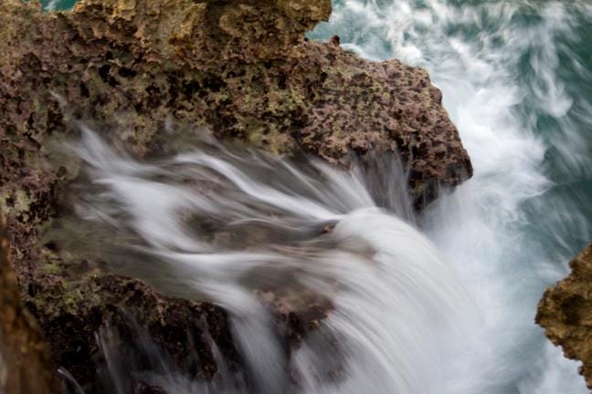 Steve had been a photopro on the island for a couple years and knew the lay of the land pretty well. He took me to the east end of the island to see the blow holes — where waves crash into the fossilized coral reef, called iron shore, and then shoot straight into the air. This ancient coral represents a time when the ocean was much deeper. At one time, this coral would have been submerged and growing. It is, in fact, what built the island.